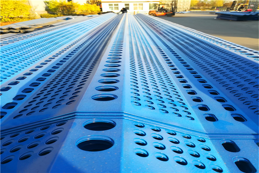 (3) 挡风板安装:使用寿命15~20年。使用环境温度:-40℃至+80℃,连接采用螺钉和压板固定。挡风抑尘扳的具体尺寸、弯曲度、开孔率应根据堆场的实际情况进行设计。
