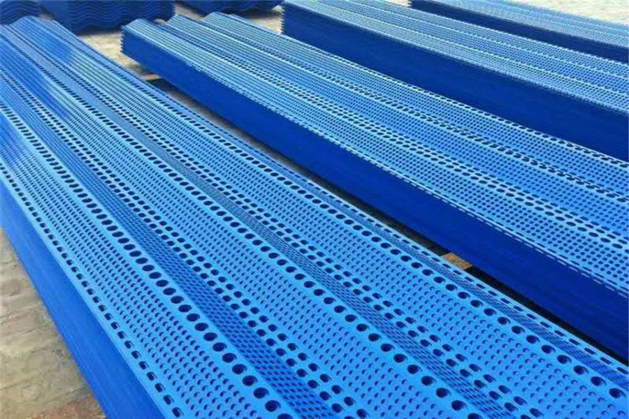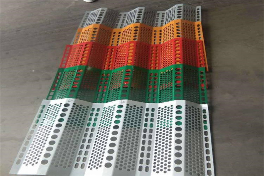 防风抑尘网是利用空气动力学原理,按照实施现场环境风洞实验结果加工成一定几何形状、开孔率和不同孔形组合挡风抑尘墙,使流通的空气(强风)从外通过墙体时,在墙体内侧形成上、下干扰的气流以达到外侧强风,内侧弱风,外侧小风,内侧无风的效果,从而防止粉尘的飞扬。