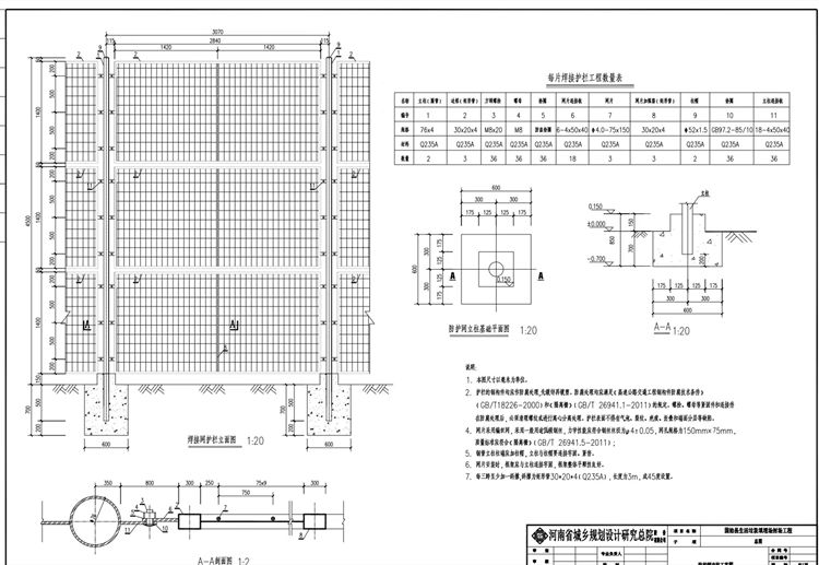 1.本图垃圾填埋场金属焊接护栏尺寸以毫米为单位。