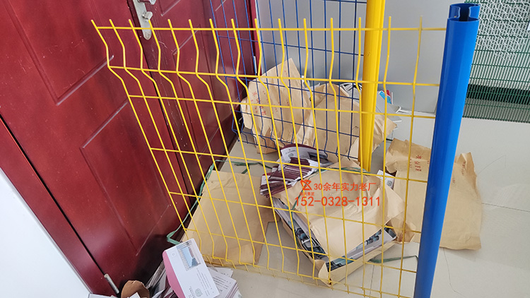 6.加工工艺:网片焊接成型后→脱脂→纯水清洗→硅烷化处理→烘干→环氧底粉→高温聚合处理→彩色聚酯涂层→高温聚合处理,涂层厚度≥100um,防腐能力达到10年以上;