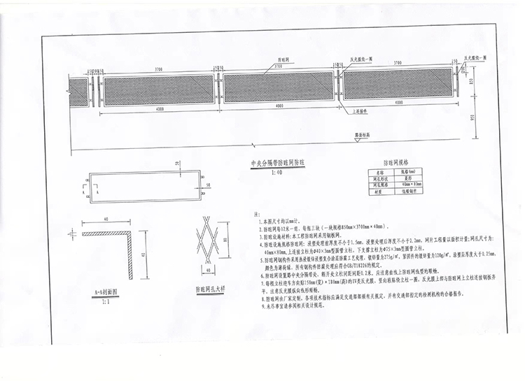 2.防眩网每12米一组,每组三块(一块规格850mm×3700mm×40mm)。