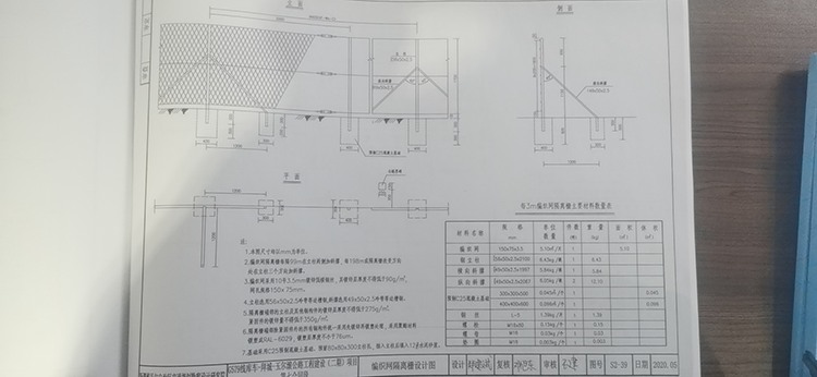 3.编织网采用10号3.5mm镀锌低碳钢丝,其镀锌层厚度不得低于90g/㎡,网孔规格150×75mm。
