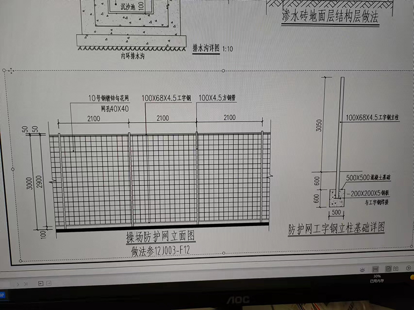 操场勾花防护网,做法参照12J003-F12