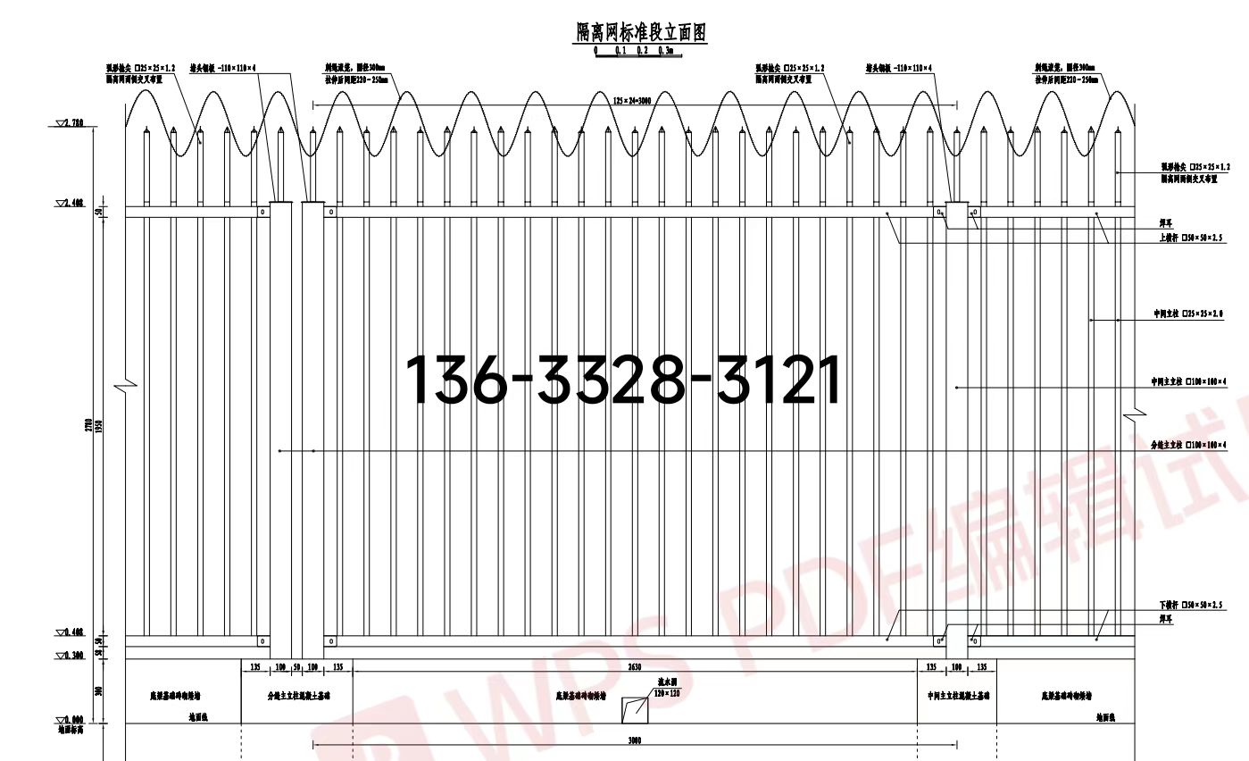 10.主立柱、栏栅网片及刺绳均为工厂制作,现场安装。
