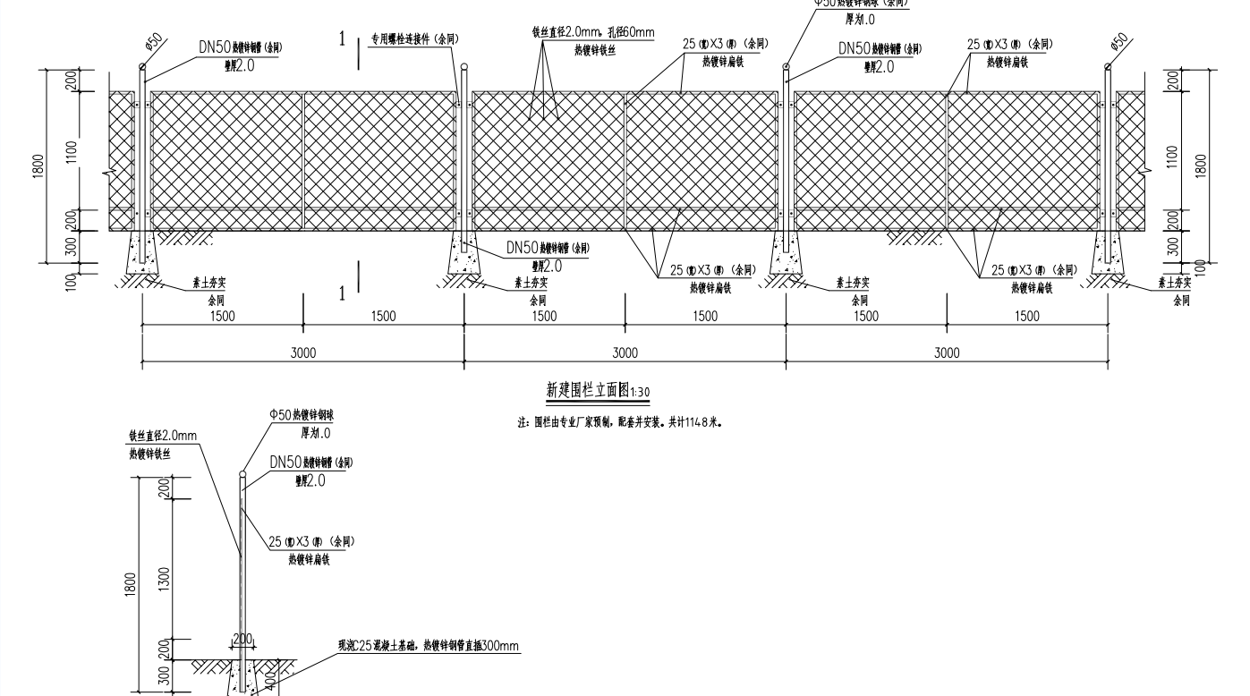3.网片采用编织网,采用一般用途低碳钢丝,力学性能应符合钢丝丝径为φ4+ 0.05,网孔规格为150mmx75mm,质量标准应符合《隔高栅》(GB/T 26941.5-2011);