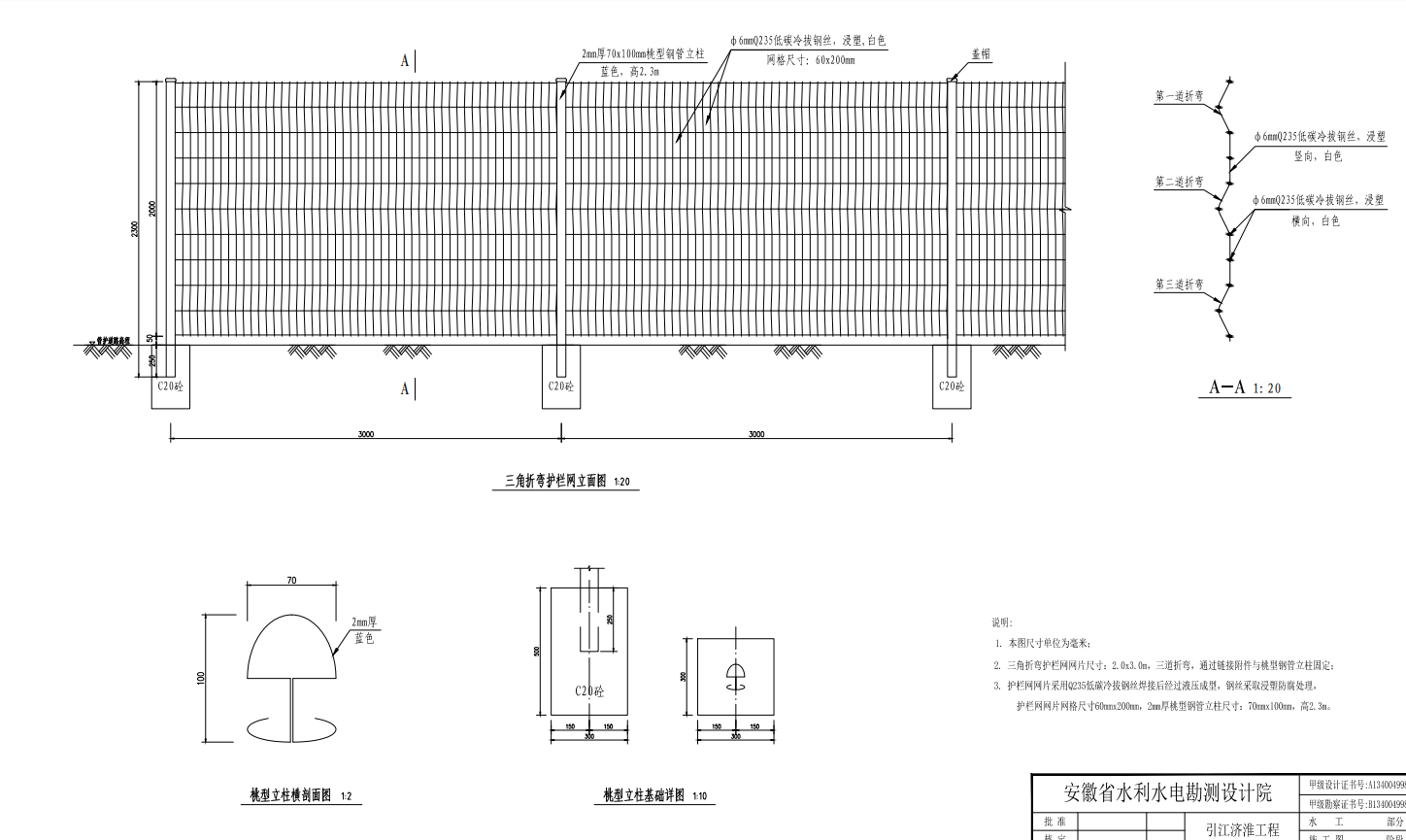 厂家供应三角折弯护栏网,河道水库围栏,桃型立柱浸塑,引江济淮
