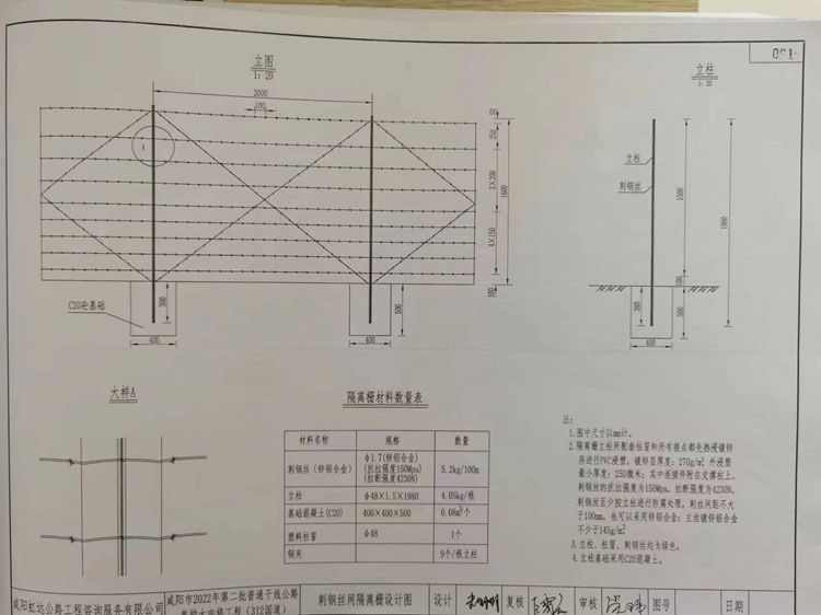 4.咸阳市普通干线公路刺钢丝网隔离栅立柱基础采用C20混凝土。
