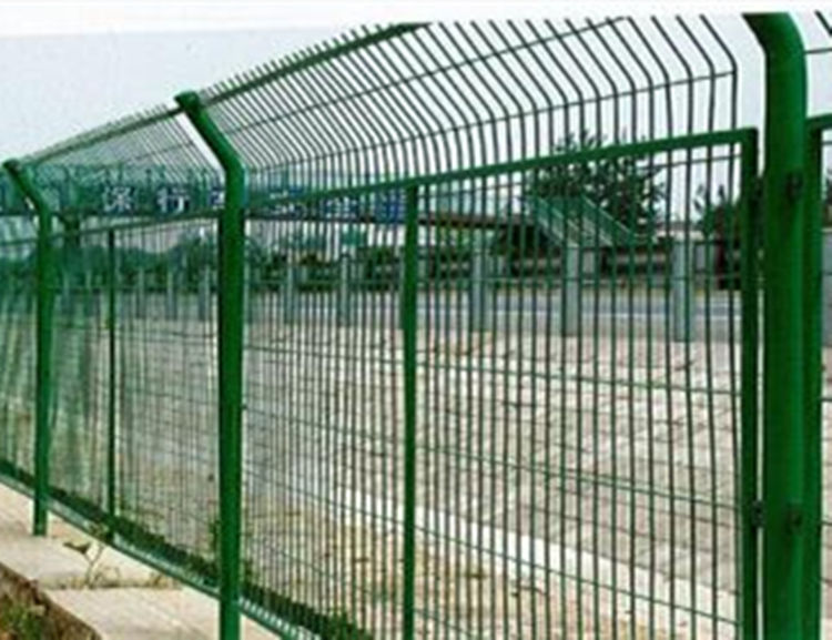 (3) 绿色金属防护围栏金属网片采用Q235矩管边框,规格30mm×50mm×2mm; 内部网丝采用φ4mm冷拔钢丝,规格75mm×150mm,上部向外折角30°,垂直高度300mm。外形 尺寸长×宽:1800mm×3000mm。