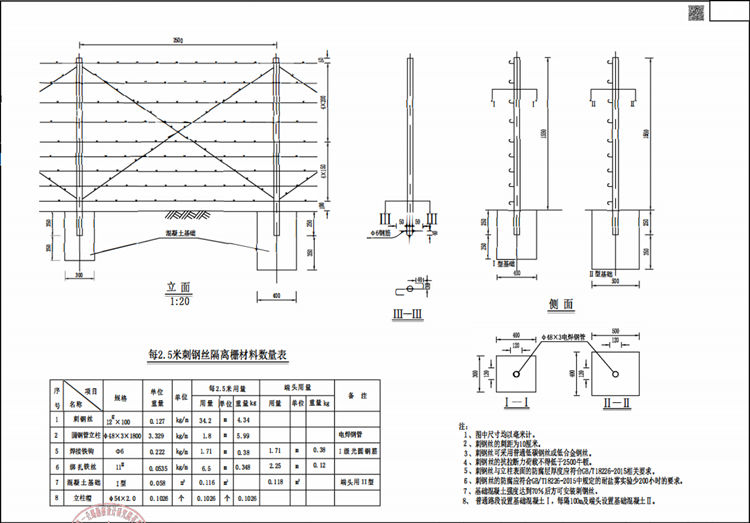 7、基础混凝土强度达到70%后方可安装刺钢丝.