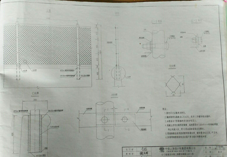 3、本图铁路立交编织网防落网设在砼护栏项上。