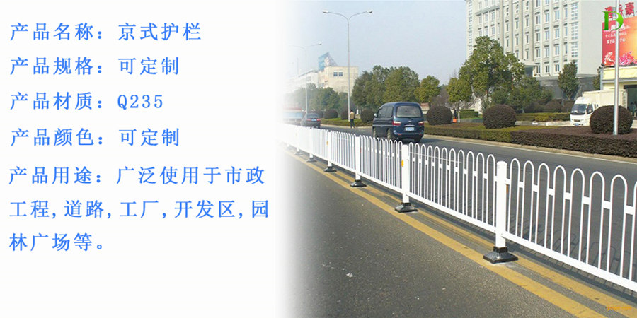 用途:市政交通护栏(京式交通护栏)用在市政道路的分离管理和高速公路、公路分离管理以及围墙防护等用途。