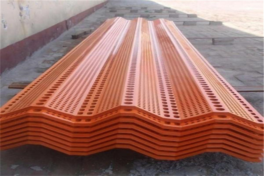 (3) 挡风板安装:使用寿命15~20年。使用环境温度:-40℃至+80℃,连接采用螺钉和压板固定。挡风抑尘扳的具体尺寸、弯曲度、开孔率应根据堆场的实际情况进行设计。
