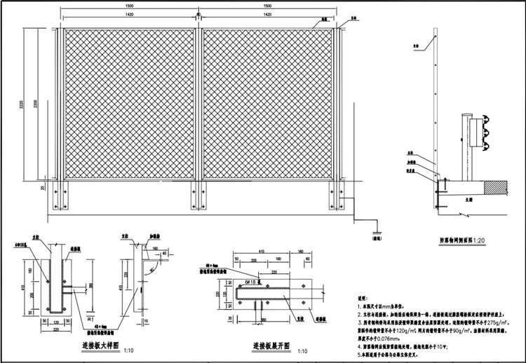 (2) 防落物网应做接地处理,接地电阻小于10Ω。