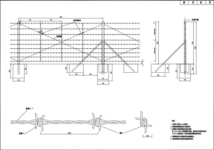 3、刺钢丝隔离栅技术要求及施工注意事项