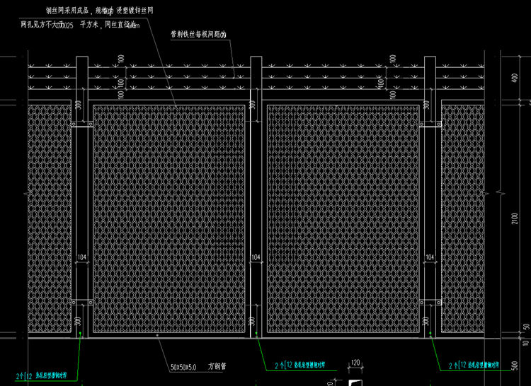 4、围网立柱间距一般为1.606米,具体按照围网布置图确定。